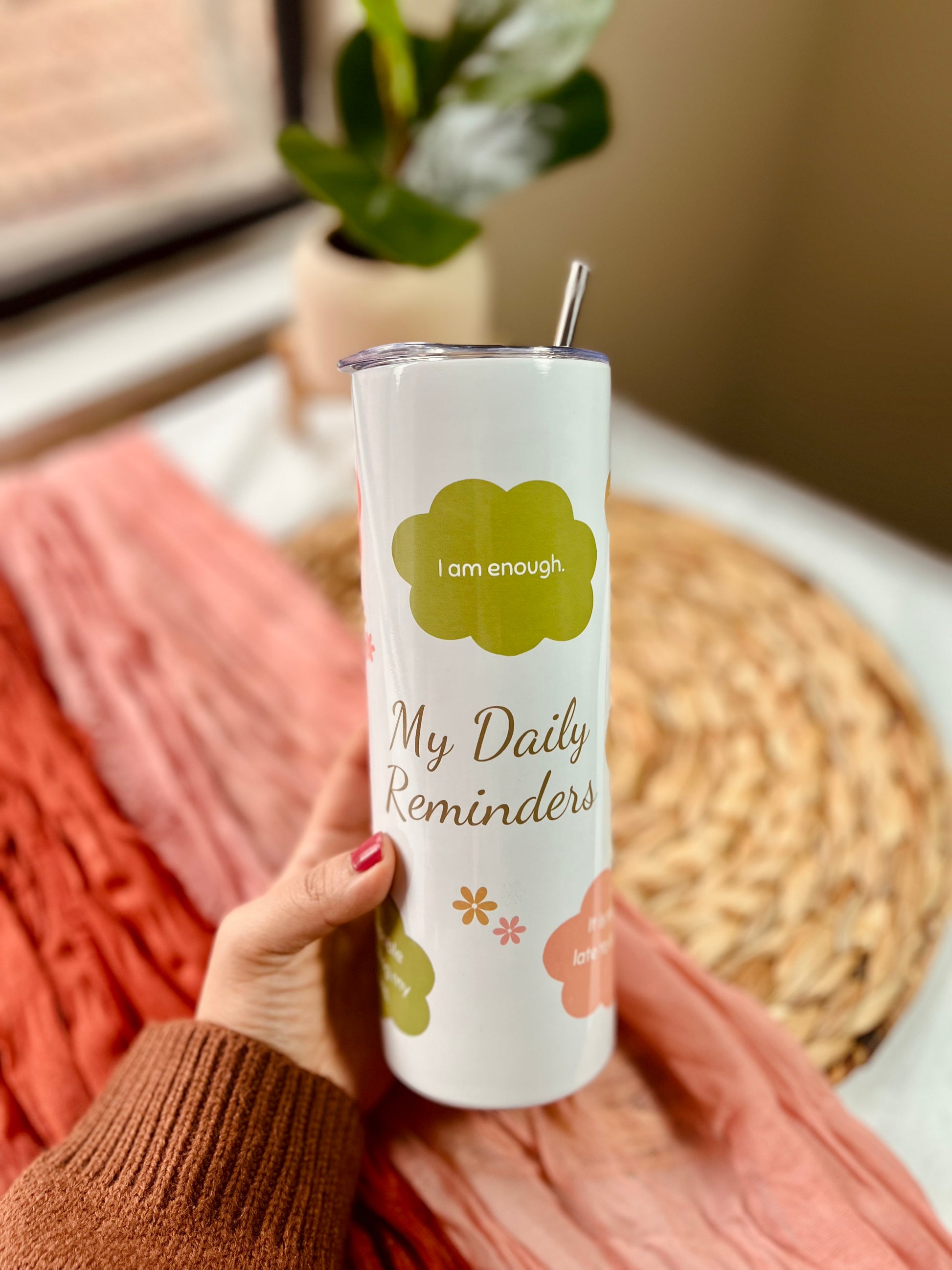Sip, sparkle and carry your affirmations with you. This beautifully designed tumbler, filled with uplifting reminders, is your perfect companion for staying hydrated and inspired throughout the day.
